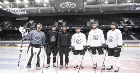 Il portiere Joren van Pottelberghe, i difensori David Aebischer e Calle Dahlström e gli attaccanti Jiri Sekac e Radim Zohorna hanno "assaggiato" il ghiaccio della Cornèr Arena.