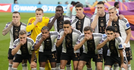 Altre polemiche in Qatar: poco prima del fischio d'inizio del match contro il Giappone, i giocatori tedeschi hanno posato per la classica foto di squadra. Tutti con la mano davanti alla bocca, a simboleggiare l'impossibilità di esprimere liberamente la propria opinione. Nel mirino la FIFA che aveva minacciato sanzioni sportive a chi avrebbe sostenuto i diritti LGBTQ+ in Qatar, indossando la fascia "One Love". «I diritti umani non sono negoziabili», ha twittato la Federazione tedesca.