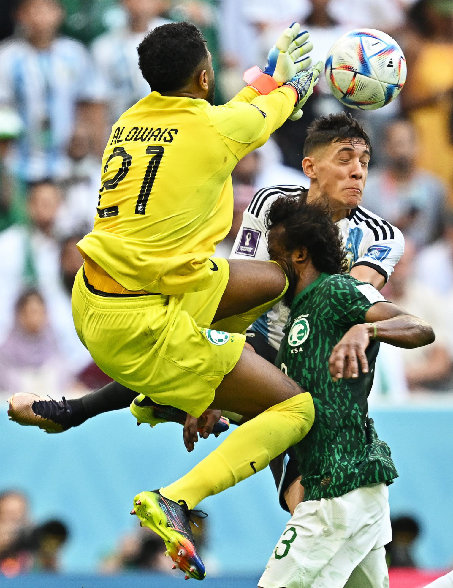 CHE BOTTA! Lo scontro tra il portiere e il difensore lascia a terra il saudita Al-Shahrani, colpito alla testa da una ginocchiata. Al-Shahrani si è poi rialzato, ma esce in barella per precauzione #argentina #arabiasaudita#alowais #alshahrani #mondiali pic.twitter.com/HxAXlbJMgs