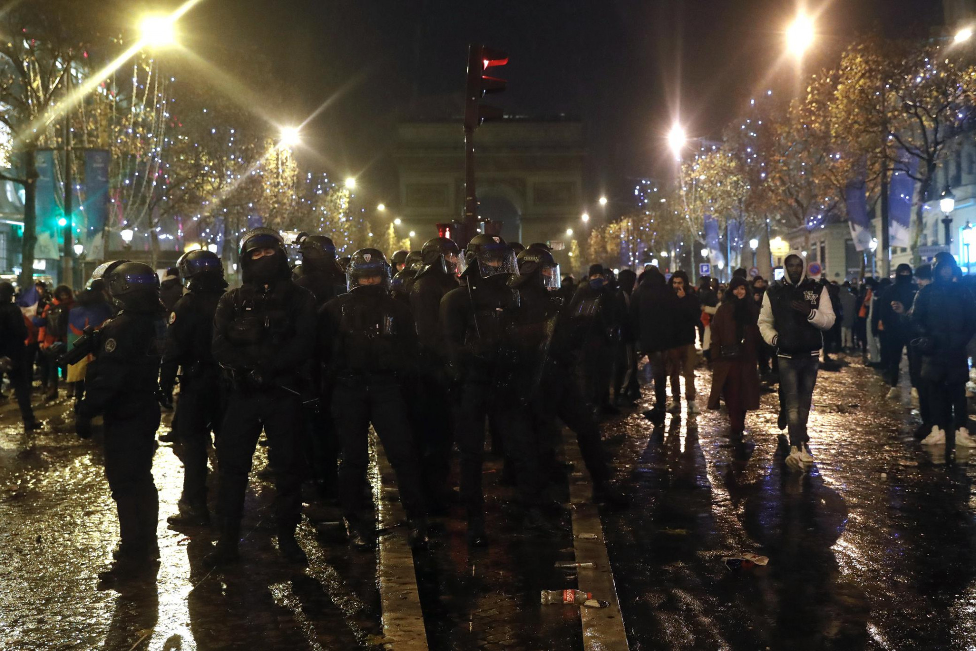 Un totale di 227 persone sono state interrogate in Francia, di cui 47 a Parigi e nel suo agglomerato, in seguito alla sconfitta maturata dai transalpini in finale contro l'Argentina. Stando a un comunicato stampa emesso dal ministero degli Interni, 14'000 persone - fra agenti di polizia e forze militari - sono state sparpagliate per tutta la nazione - tra cui 2'750 a Parigi - per contenere i disordini dei tifosi, già visti contro Algeria e Marocco. Da segnalare che nella zona dei Campi Elisi le forze dell'ordine sono state costrette all'utilizzo di gas lacrimogeni, poiché diventate il bersaglio di lanci di bottiglia e fuochi d'artificio da parte di alcuni esagitati.