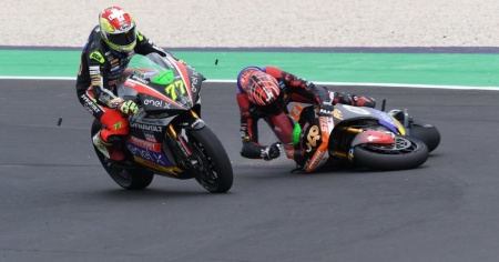 L'elvetico ha conquistato la gara ma è stato penalizzato per aver buttato a terra Jordi Torres e ha perso il Mondiale.
