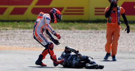 «La cosa più importante è che Miguel stia bene – ha commentato a "Sky" Marquez scusandosi col collega – Oggi ho fatto un errore e sono stato penalizzato. Non era mia intenzione e non volevo nemmeno superare Martin perché non ero abbastanza vicino per un attacco. Ho scelto la gomma dura all'anteriore e ho avuto un grande bloccaggio. Volevo andare a sinistra ma non sono riuscito a sollevare la moto. Ho evitato Martin, ma ho colpito Oliveira. È stato un grande errore, mi scuso con lui, col suo team e coi tifosi al circuito», ha concluso l’otto volte campione del mondo, che nella caduta e nel contatto ha rimediato un duro colpo alla mano destra (si teme la frattura del primo metacarpo).