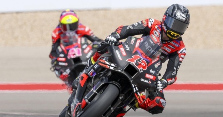 Domani, nel GP delle Americhe vero e proprio (ore 21), il pilota dell'Aprilia partirà davanti a Pedro Acosta e Marc Marquez.