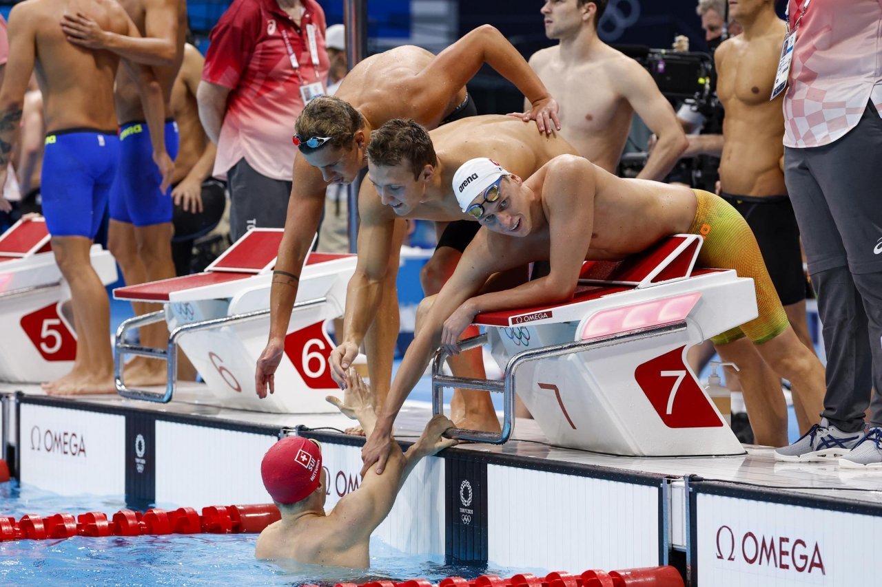 La Svizzera ha chiuso al sesto posto la staffetta 4x200m stile libero. Antonio Djakovic (frazione da 1'45"77, record svizzero), Nils Liess, Noè Ponti e Roman Mityukov si sono battuti con ardore (7'06"12, primato nazionale), senza però riuscire ad avvicinare le migliori della finale. Alla fine ha vinto la Gran Bretagna, che con il record Europeo (6’58”58), ha preceduto la Russia (+3”23) e l’Australia (3”26).