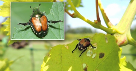 Rischio serio al confine meridionale - Il coleottero giapponese, come indica il nome, proviene dal Giappone. Oltre un secolo fa, larve di questo insetto furono introdotte assieme a bulbi di fiori in America dove, da allora, si registrano danni ingenti cui si cerca di far fronte con un dispendio enorme. Le larve vivono nel terreno dei prati umidi e si nutrono prevalentemente di radici erbose; gli adulti, invece, divorano le foglie di diversi alberi (p.es. melo, olmo, tiglio, acero, pesco), arbusti (vigna, mora o rosa) e altre piante (mais, soia, ecc.). Spesso le piante vengono ridotte a uno scheletro.