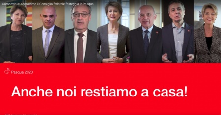 BERNA - «Questa Pasqua è diversa: restate a casa». Il messaggio, ripetutamente rivolto dalle autorità alla popolazione svizzera in questo periodo contraddistinto dall'epidemia di coronavirus, è stato ribadito oggi in un video dai sette consiglieri federali. Nel breve filmato, i membri dell'esecutivo illustrano i propri programmi per i prossimi giorni festivi, uniti da un solo, rigoroso, denominatore comune: rimanere tra le mura domestiche.