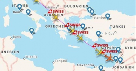Malgrado lo stop del traffico aereo, diversi velivoli della compagnia svizzera hanno attraversato il Mediterraneo