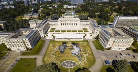 L'artista ha realizzato un affresco di 6'000 m2 nel parco del Palazzo delle Nazioni di Ginevra