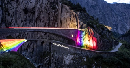 Proiettato ieri sera un arcobaleno e altri oggetti sul Ponte del Diavolo nella gola di Schöllenen.