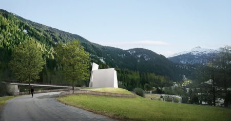 La prima chiesa autostradale della Svizzera troverà dunque la sua ubicazione sull'autostrada A13, nei pressi di Andeer, lungo la strada del Bernardino. Il progetto è stato affidato ai rinomati architetti di Basilea Herzog & de Meuron.