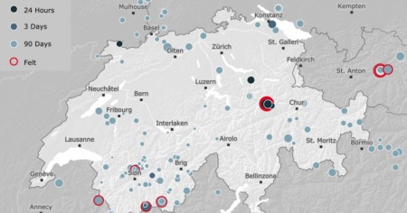 Nella regione ci sono già stati vari sismi domenica sera. Il terremoto più forte - con una magnitudo di circa 4,4 - è stato registrato alle 20.35. Scosse di questa intensità sono piuttosto rare in Svizzera.
