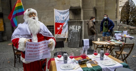 Gestori di bar, ristoranti e locali vodesi hanno inscenato una protesta con tavoli vuoti e menu... particolari