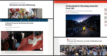 Strategia rischiosa - Il quotidiano britannico Financial Times parla dal canto suo di una «strategia rischiosa» e di «decisioni clementi». La Svizzera ha fatto bene economicamente, per il giornale, ma a discapito del sistema sanitario.