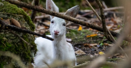 GOLDAU - Un giovane capriolo quasi interamente bianco vive da qualche mese nel Tierpark di Goldau (SZ). L'animale possiede una variazione di colorazione rara in natura, ma non si tratta di un albino, in quanto ha delle macchie marroni sulla testa e sul collo.