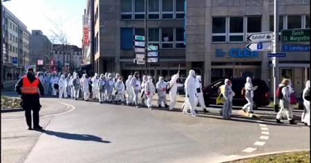 I dimostranti si sono riuniti attorno alle 13.00 sulla Quaderwiese, un prato a poche centina di metri dalla stazione, contiguo al Museo della natura dei Grigioni. Alcuni si sono presentati in tute protettive bianche, altri hanno sventolato bandiere e striscioni. Dopo aver sfilato per le strade del centro storico, la manifestazione si è conclusa con gli interventi di diversi oratori, che hanno criticato in particolare la politica del Consiglio federale.