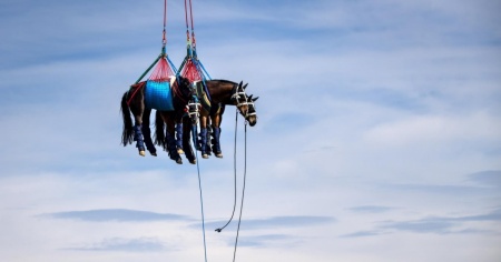 È avvenuto nell'ambito di un esperimento condotto in sinergia tra le forze aeree svizzere, il servizio veterinario dell'esercito e la facoltà di medicina veterinaria VetSuiss di Zurigo. Lo scopo? Testare il trasporto dei cavalli con degli elicotteri, per capire se «sia in grado di volare per un lungo periodo a una velocità relativamente elevata, restando tuttavia in una situazione confortevole» ha dichiarato il colonnello Stéphane Montavon, a capo del servizio veterinario dell'esercito.