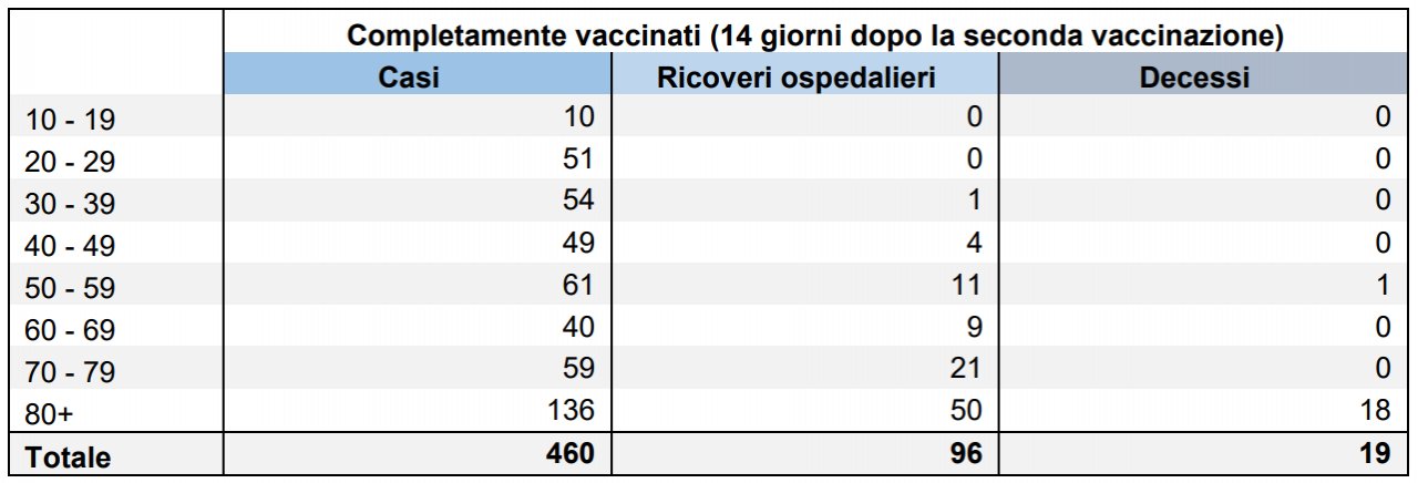 Per quanto riguarda invece soltanto la settimana in rassegna (26 luglio-1. agosto 2021) e quella precedente, le persone completamente vaccinate che hanno contratto il virus sono state 124.