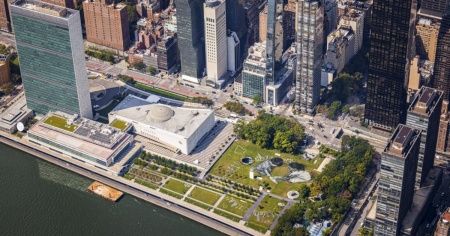 Per poter osservare l'affresco bisogna librarsi in aria: si tratta infatti di un'opera effimera (un dipinto ecologico su erba destinato a scomparire) realizzata sui prati situati all'esterno del Palazzo di vetro. E rappresenta la partecipazione dei giovani alla riflessione che deve rendere le Nazioni Unite più forti ed efficaci.
