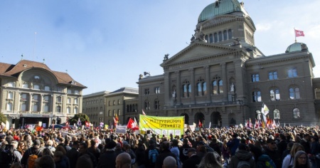Migliaia di manifestanti si sono rinuniti oggi pomeriggio davanti a Palazzo Federale