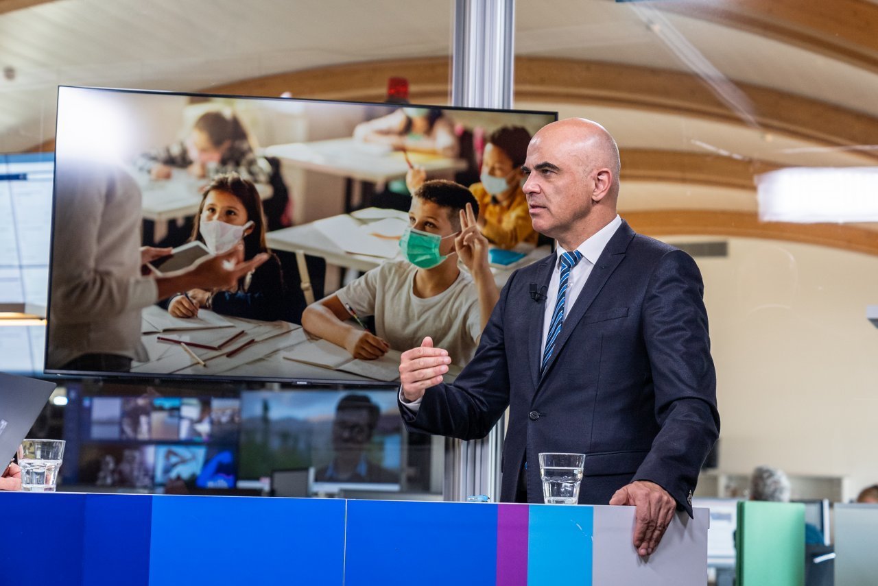 Berset: «Questa è una buona domanda. Si tratta di un ambito in cui le decisioni sono di competenza dei Cantoni, non della Confederazione. I bambini sono comunque meno colpiti dalla malattia e questa è una cosa buona. Ci sono le mascherine, ma anche i test salivari».