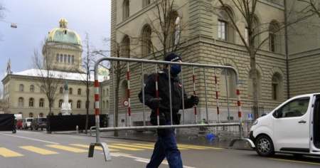 Misure di protezione mai viste a Berna in vista del voto odierno sulla Legge Covid-19.