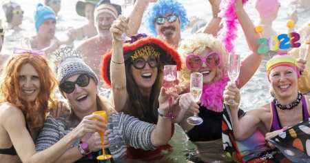 Decine di persone hanno festeggiato l'inizio del 2022 con un brindisi a mollo nell'acqua