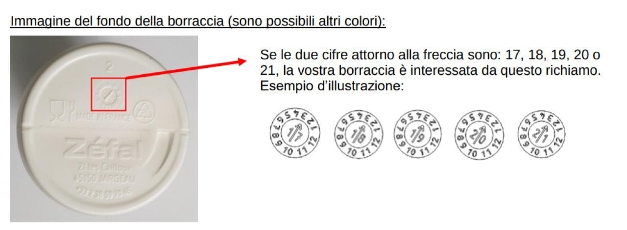 I consumatori in possesso di una di queste borracce, specifica UPI, sono pregati di non utilizzarle più e di eliminarle tempestivamente oppure di rimandarle al produttore seguendo le istruzioni: https://www.zefal.com/en/cms/67/LittleZ_Recall.
