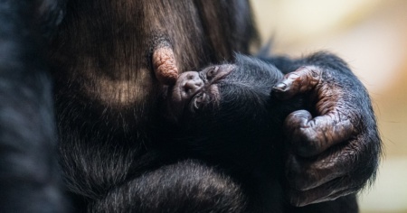BASILEA - Lieto evento allo zoo di Basilea, dove mamma scimpanzé Garissa (tredici anni) ha messo al mondo la piccola Tsangi.