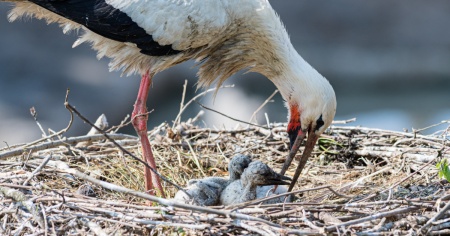 Inanellamento - Prima che le giovani cicogne spicchino il volo verso sud alla fine di luglio, lo Zoo di Basilea applica un anello ad ogni pulcino. Negli anni pari, come il 2022, l'anellino viene posizionato a destra, mentre negli anni dispari a sinistra. Grazie al cerchietto gli esemplari possono essere identificati anche in seguito. L'inanellamento avviene quando i piccoli hanno non più di due mesi. Fino a questa età infatti le cicogne presentano un comportamento istintivo chiamato acinesia: quando vengono avvicinati dall'uomo o da potenziali nemici i piccoli si abbassano e rimangono immobili. In questo modo i guardiani dello zoo possono applicare l'anellino in maniera delicata e indolore. Questo comportamento istintivo scompare dopo circa due mesi di vita.