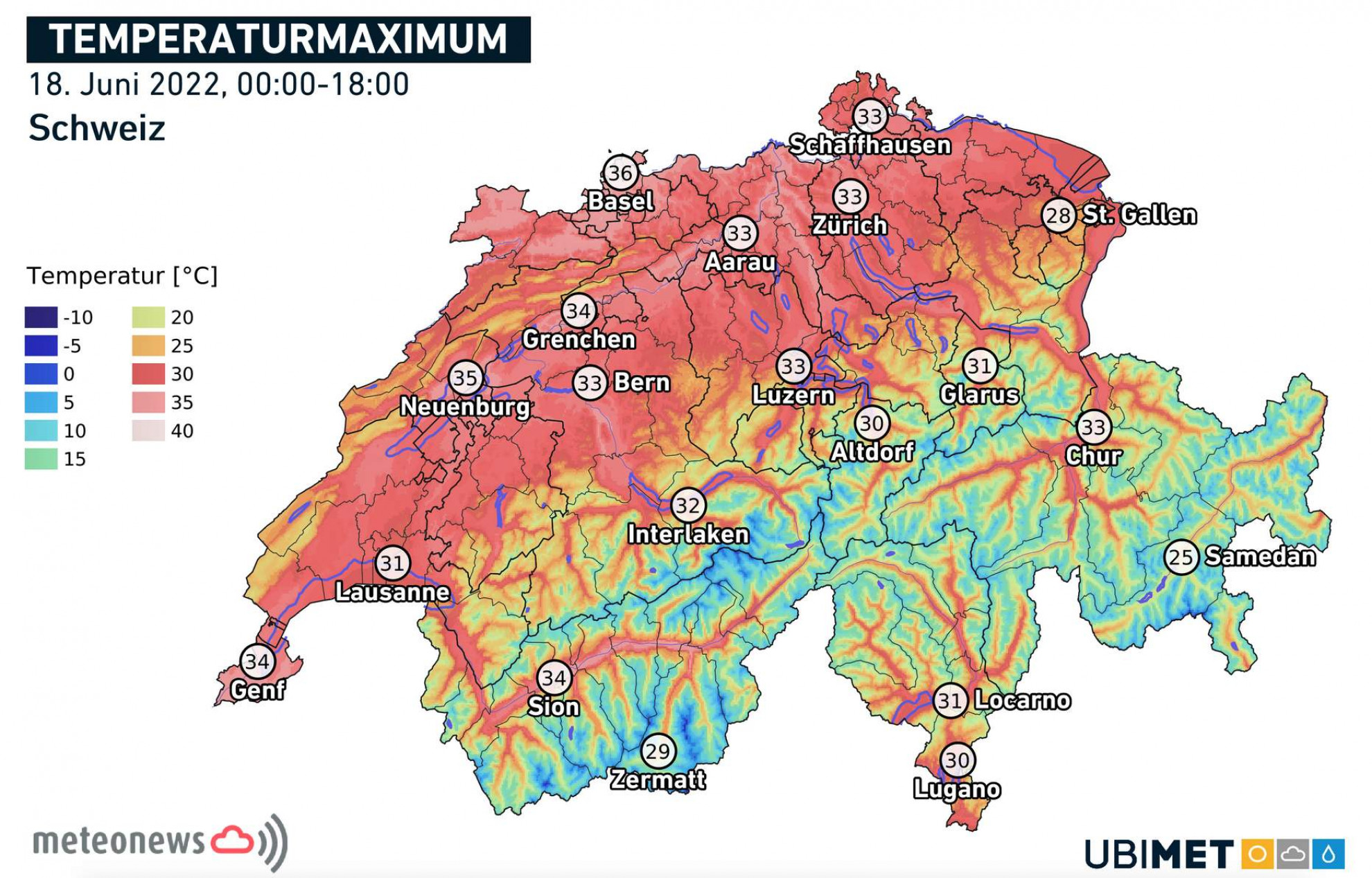 Il record di calore nella giornata odierna va a Basilea con i suoi 35.5°, ma in tutto il Paese ha fatto molto caldo.