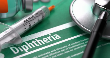 La malattia si manifesta da 2 a 5 giorni dopo il contagio, generalmente con mal di gola, febbre e disturbi della deglutizione. In un secondo momento subentrano raucedine, respiro sibilante e ingrossamento dei linfonodi del collo. In alcuni casi la tossina rilasciata dal batterio provoca, anche a distanza di settimane, gravi complicazioni come miocarditi, compromissioni renali e del fegato o paralisi. La mortalità per difterite faringea è elevata (fino al 50% dei pazienti), ma somministrando tempestivamente un’antitossina si riduce al 5-10 per cento dei casi.