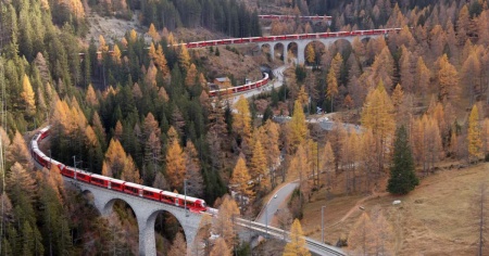 COIRA - Un trenino rosso lungo quasi due chilometri e composto da cento carrozze: è il convoglio ferroviario per passeggeri più lungo del mondo messo sulle rotaie dalla Ferrovia retica. Pesa tremila tonnellate e ha percorso i venticinque chilometri da Preda ad Alvaneu alla velocità di 30-35 chilometri. È passato su 48 ponti e ha attraversato 22 gallerie sulla tratta di montagna inserita nel patrimonio dell'umanità dell'Unesco.