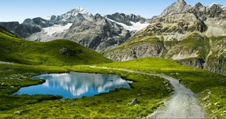 La "Via svizzera" è un sentiero che aggira, costeggiandolo, il Lago d'Uri (il braccio urano del Lago del Quattro Cantoni) e realizzato in occasione del 700o della Confederazione. Il percorso - finanziato da tutti i cantoni - fu inaugurato il 4 maggio 1991 dall'allora consigliere federale Jean-Pascal Delamuraz. L'itinerario inizia al celebre praticello del Grütli per giungere a Brunnen (SZ) dopo 36 chilometri.