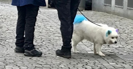 ZURIGO - È recentemente diventata virale, ed è stata oggetto di nutrite discussioni, una fotografia scattata tra le strade di Zurigo che immortala un cane con le orecchie e la coda tinte di blu e di viola.