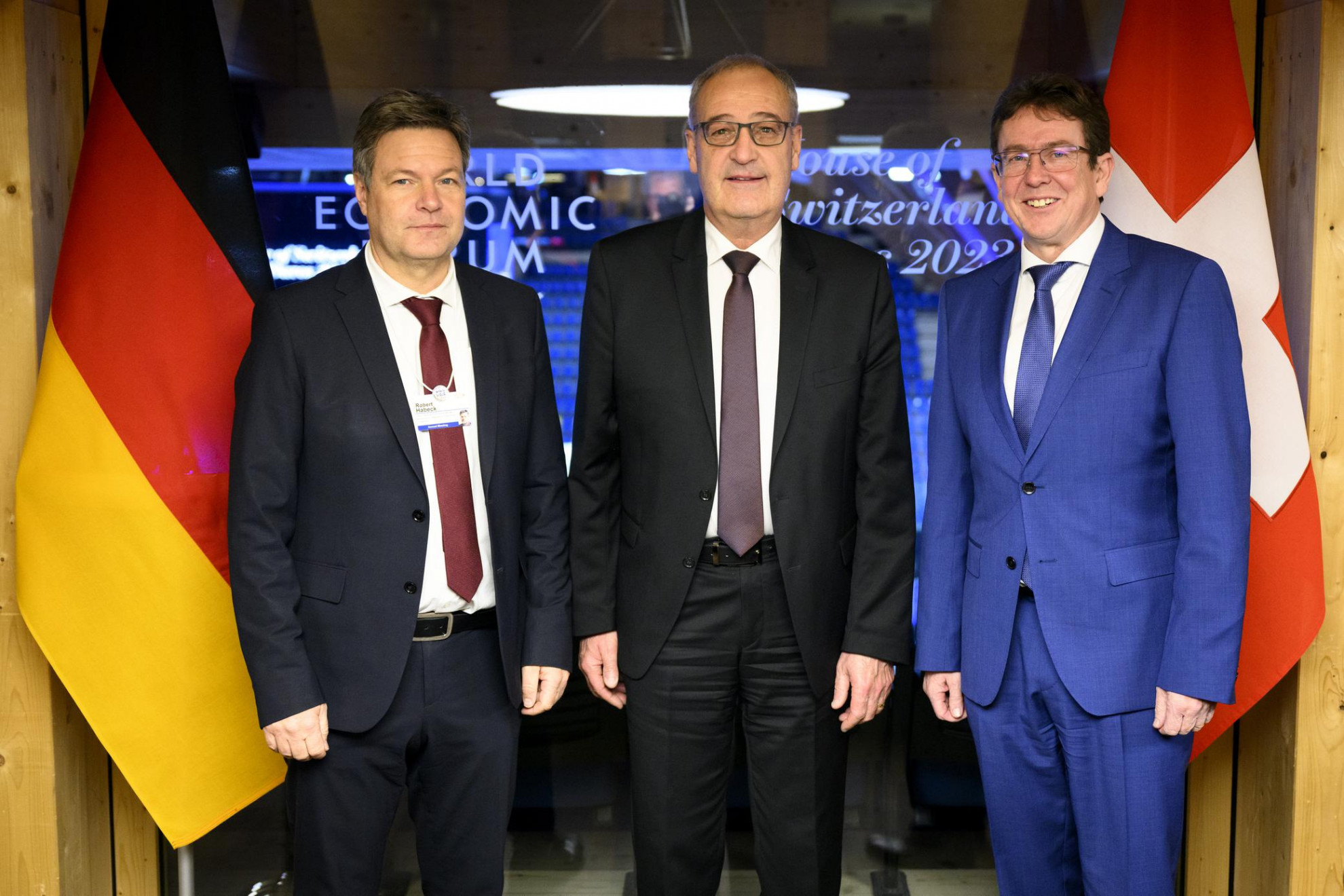 Nel quadro dell'incontro annuale del WEF a Davos, i consiglieri federali Guy Parmelin e Albert Rösti hanno incontrato Robert Habeck, vicecancelliere tedesco e ministro dell'economia e della protezione del clima. Durante il colloquio sono state trattate le relazioni economiche bilaterali e le relazioni tra la Svizzera e l'UE. Alla luce dell'attuale tensione nel settore energetico a livello globale, i tre ministri hanno altresì discusso delle sfide comuni nel campo della sicurezza energetica.