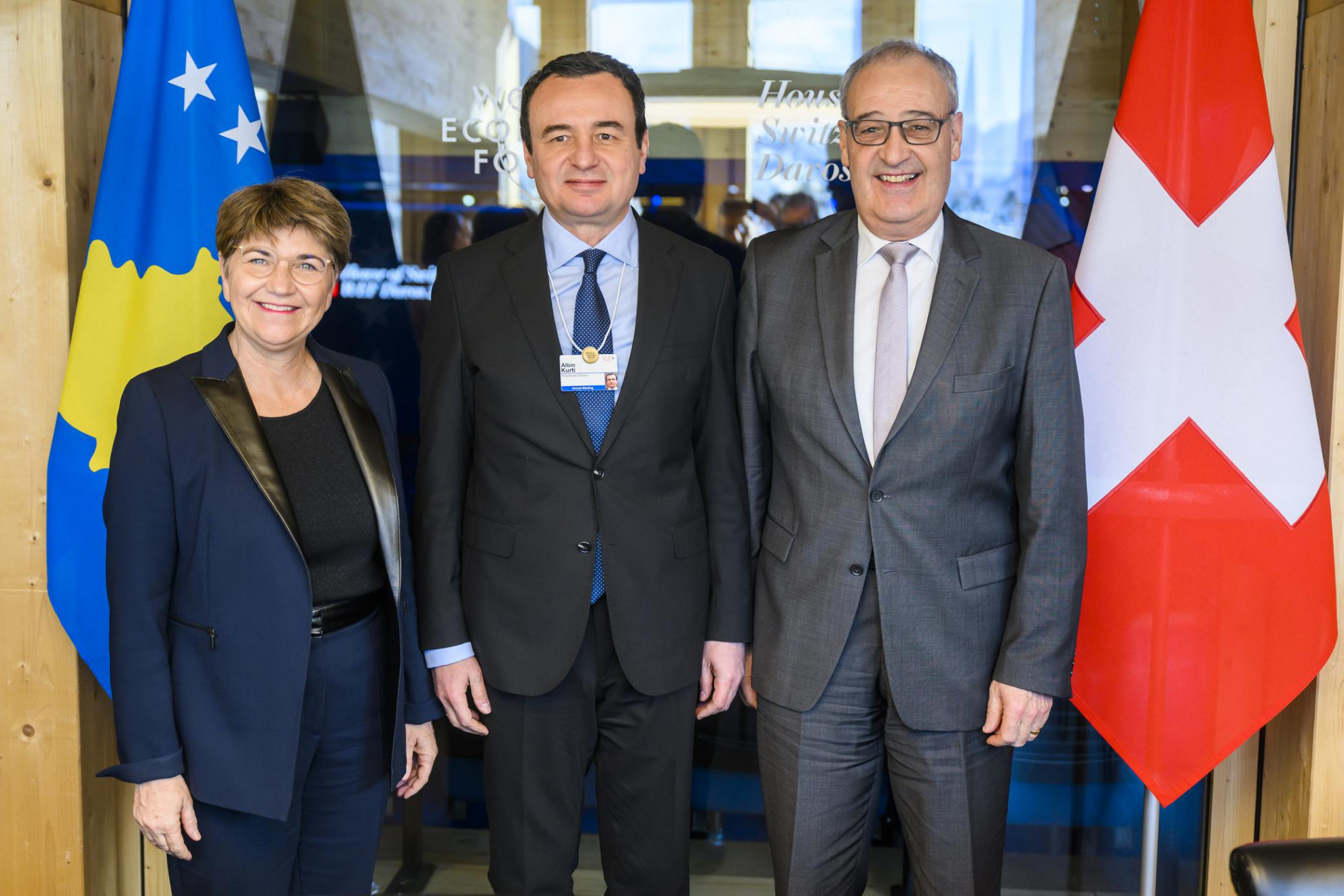 I consiglieri federali Viola Amherd e Guy Parmelin hanno oggi incontrato, in occasione del Wef, il primo ministro del Kosovo Albin Kurti. Nel corso del colloquio si è discusso di sicurezza e della situazione economica della regione balcanica. «Una situazione di sicurezza stabile nei Balcani occidentali è molto importante per la Svizzera e per l'Europa», ha commentato Amherd dopo l'incontro. «Il nostro rapporto è eccellente e si rafforza ogni giorno di più», ha ribadito Parmelin.