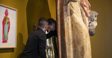 L'artista è rimasto isolato 24 ore su 24 durante una settimana nella copia ingrandita di una statua del 15esimo secolo rappresentante San Bartolomeo.