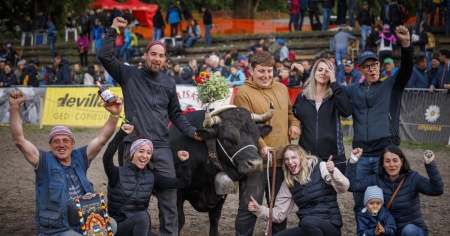 APROZ - Si chiama "Mélodie", la mucca d'Hérens - una razza montana da sempre allevata in Vallese - che ha vinto quest'anno i tradizionali combattimenti tra bovini disputatisi ad Aproz (VS).