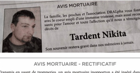 TAVANNES - Pochi giorni fa Nikita Tardent (36enne residente nel Giura bernese) ha iniziato a ricevere decine di telefonate e messaggi da amici e parenti che gli chiedevano se fosse ancora vivo. Inizialmente confuso, è rimasto presto incredulo: qualcuno aveva pubblicato un necrologio per lui sul “Quotidien Jurassien”. Questo nonostante sia ancora assolutamente vivo.