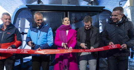 ZERMATT - Diventa realtà la traversata alpina continua con impianti di risalita da Cervinia (Italia) a Zermatt (VS). È stata infatti inaugurata oggi la nuova funivia trifune in territorio elvetico tra Testa Grigia (3.458 metri di quota), lungo il confine con l'Italia, e il Piccolo Cervino (3.821 metri). Madrina d'eccezione della cerimonia è stata Michelle Hunziker.