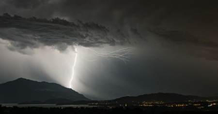 ... e tempeste - Con l’avvicinamento di un fronte caldo, la sera dell’11 luglio a ovest della Svizzera si è sviluppato un enorme sistema temporalesco, che successivamente è transitato sopra la Svizzera. Nella tarda serata, alle 22 circa, esso ricopriva quasi l’intera Svizzera.