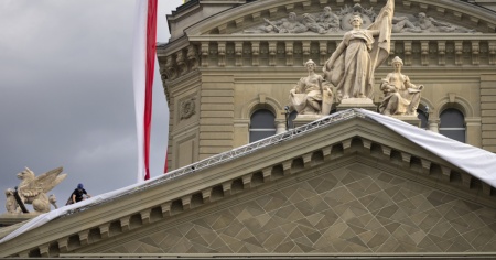 BERNA - In occasione dei festeggiamenti per il 175esimo anniversario della Costituzione, oggi alle 18.48 in punto - proprio per ricordare quel 12 settembre 1848 quando il testo venne adottato - è stata inaugurata l'opera d'arte "Tilo", che adornerà il timpano di Palazzo federale. Tra gli spettatori numerosi parlamentari, così come la consigliera federale Elisabeth Baume-Schneider.