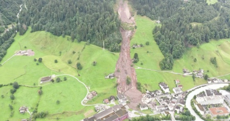 Alla fine del mese scorso, in seguito a intense precipitazioni, immediatamente a monte del villaggio si sono verificati due grandi scoscendimenti. La massa franata si estende per una lunghezza di 400 metri. Una mezza dozzina di case sono state investite da fango e pietrisco. Nessuno è rimasto ferito.