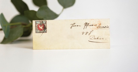 La lettera è stata inviata il 23 settembre 1851, epoca in cui la "Colomba di Basilea" era già considerata come un francobollo vecchio, per cui appare con il raro timbro federale. Si tratta di un caso unico nella Storia postale.