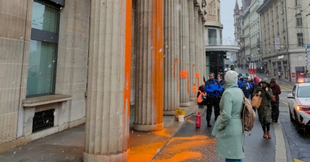 Gli attivisti di Renovate Switzerland imbrattano la banca. La richiesta: ristrutturare a livello termico gli edifici di proprietà dell'Ubs.