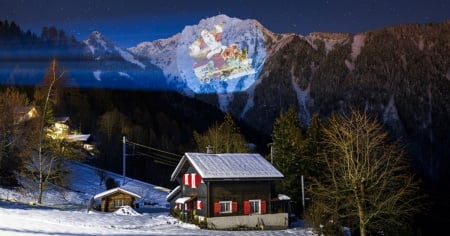 MONTREUX - Il Babbo Natale più grande al mondo è apparso questa sera su una parete dei Rochers-de-Naye sopra Montreux (VD). Si tratta di una proiezione dell'artista Gerry Hofstetter.