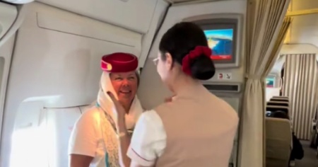 Che ha regalato alle due un viaggio un po' sopra le righe, con le assistenti di volo ben felici di trascorrere il tempo della tratta in piena serenità. Mamma e figlia hanno così potuto visitare l'aereo, chiacchierare con le hostess e gli steward e divertirsi filmandosi con il personale di bordo. «Hanno persino tirato fuori una macchina fotografica Polaroid e hanno vestito mia madre con l’uniforme dell’equipaggio di cabina. È stato fantastico».