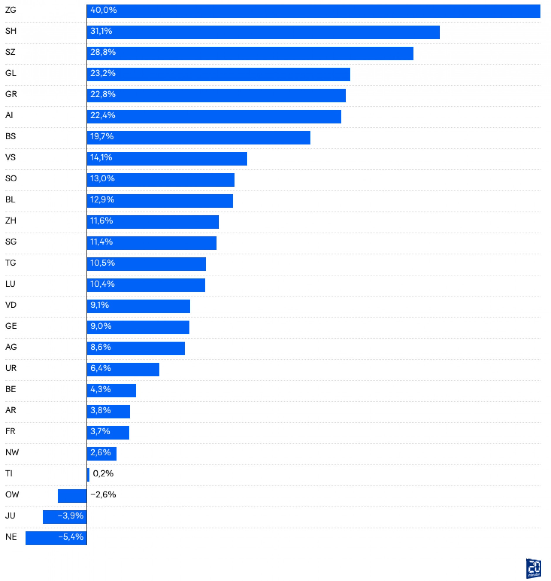 Le maggiori eccedenze sono state registrate da Zugo (40%) e Sciaffusa (31,1%). Zurigo (11,6%), Turgovia (10,5 %) e Argovia (8,6%) si collocano nella fascia media. Il Ticino è tra i cantoni virtuosi e più equi con lo 0,2%. «Sarà interessante analizzare il 2023», spiega Lukas Rühli, l’autore dello studio. Infatti, per la prima volta da anni, la BNS non ha distribuito gli utili: la maggior parte dei cantoni dovrebbe, quindi, chiudere l’anno in rosso. Tuttavia, i primi segnali vanno nella direzione opposta. Basilea Città, ad esempio, dovrebbe chiudere il 2023 con un utile di 200 milioni di franchi.