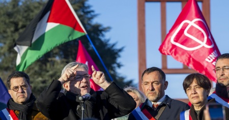 Arringando la folla, il leader di LFI ha sostenuto che è «nostro dovere di esseri umani protestare, gridare e chiedere un cessate il fuoco». Egli ha poi invitato «i potenti che ci governano» a rispettare il diritto internazionale e a «porre fine all'età delle armi».