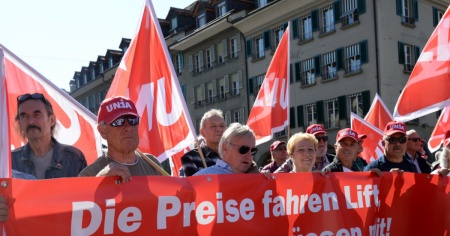 Cinquecento pensionati hanno criticato Ogi, Schneider-Ammann, Leuthard, Couchepin e Deiss: «Voi non fate fatica ad arrivare a fine mese».